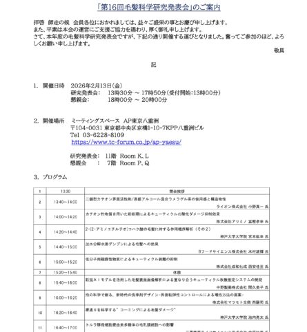 毛髪科学に関わる研究論文、総説等、幅広く掲載しております。また、年二回機関誌「毛髪科学」を発行しており、会員ページにて閲覧が可能です。毛髪科学に関わる研究論文、総説等、幅広く掲載しております。